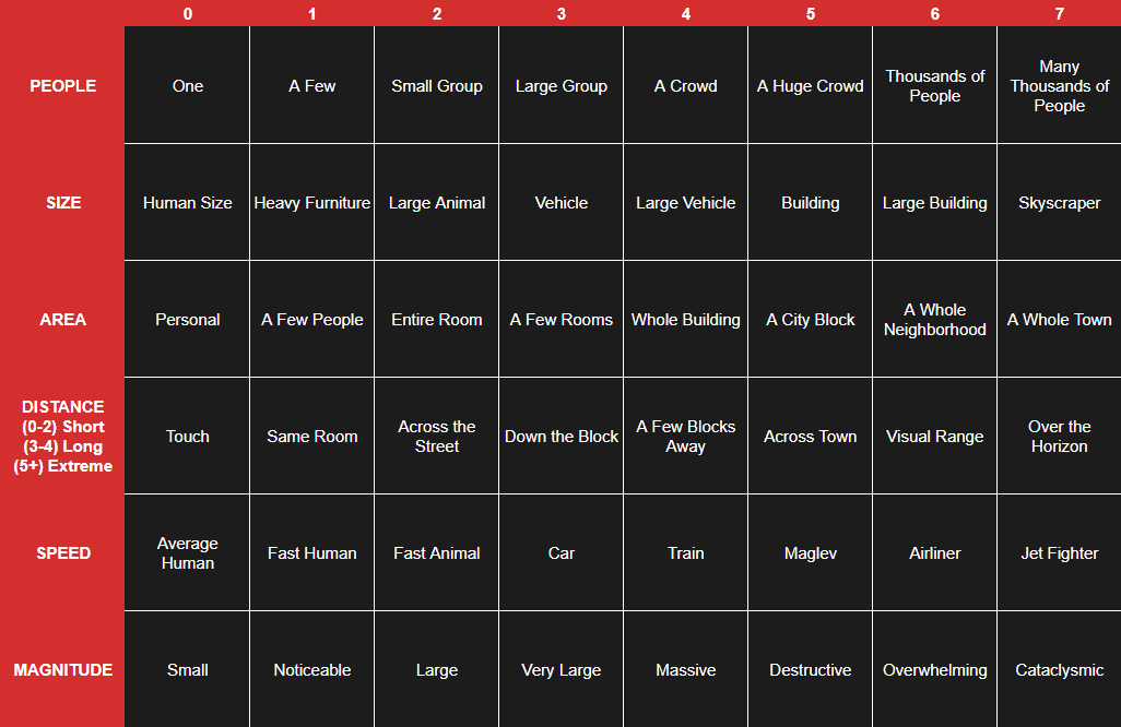 - A roll is even required for a task, typically if it’s three or more categories lower. For example, an executioner throwing a building at a single mundane human probably wouldn’t have to roll at all to crush them like an insect.